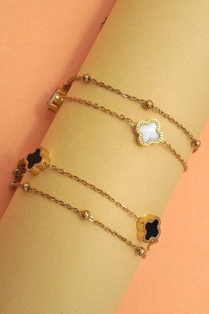 18K Stainless Steel Tarnish-Free Clover Charm from premium 18K stainless steel, this bracelet features a open cut clover charm elegantly suspended on link chain. Its tarnish-free design ensures long-lasting shine and resilience, the bracelet is hypoallergenic, waterproof, fade-resistant, and tarnish-free.