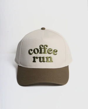 Add a fun twist to your casual look with our COFFEE RUN embroidered