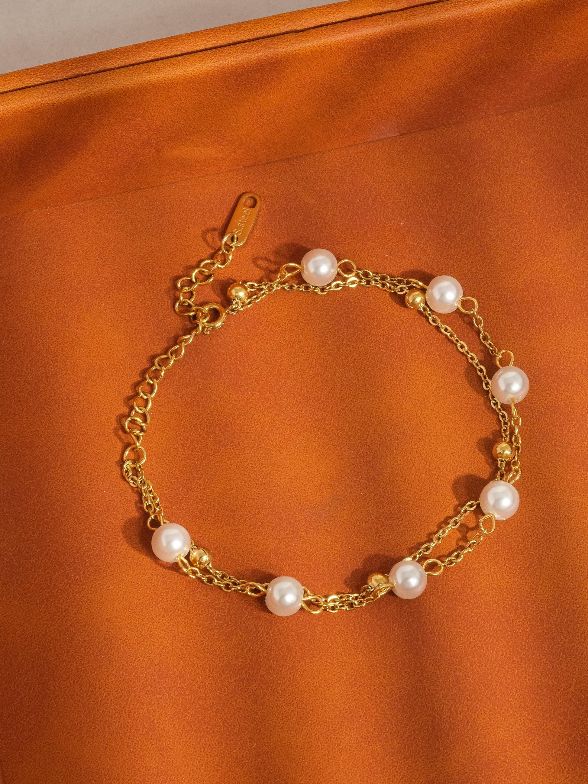 18K Non-Tarnish-Layered Pearl Bracelet 18K Gold PVD Stainless Steel Faux Pearl Pendant Size (inch):0.24in Chain Length (inch): 6.29in Extension Length (inch):i.96in - Lead-free, Nickel-safe - Hypoallergenic - Water Resistant