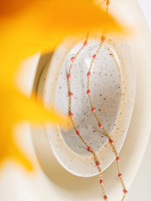Pink Lady 18K PVD Gold Non-Tarnish Beaded Petite Chain Necklace: Rose