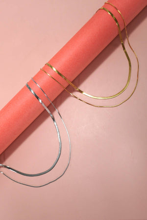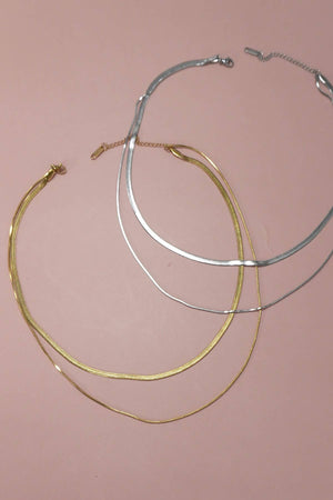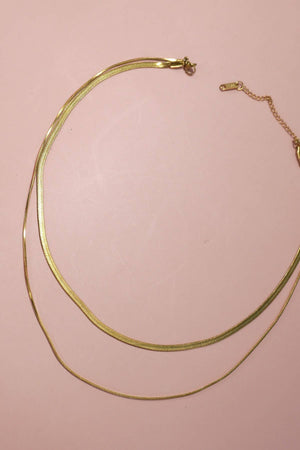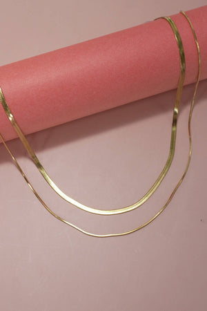 Layered Chain Necklace | Herringbone Link Necklace | Snake Chain Necklace | Real Gold Dipped Necklace | Real Gold Plated Necklace | Layering Necklace | Simple Gold Necklace