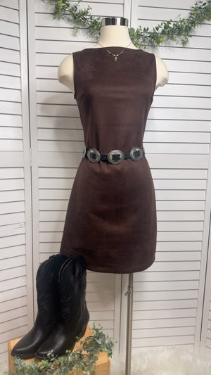 Made in USA Faux Suede Sleeveless Dress Fabric Content: 97% Polyester, 3% Spandex